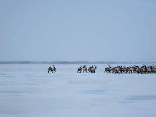 Today the reindeer migration take them from their winter grazing grounds, an area north of Jimmy Lake, to Richard Island, west of Tuktoyaktuk. Once the ice melts in the spring, the reindeer can roam freely but constrained to the predator-free island, giving Henrik a nice summer break from herding.